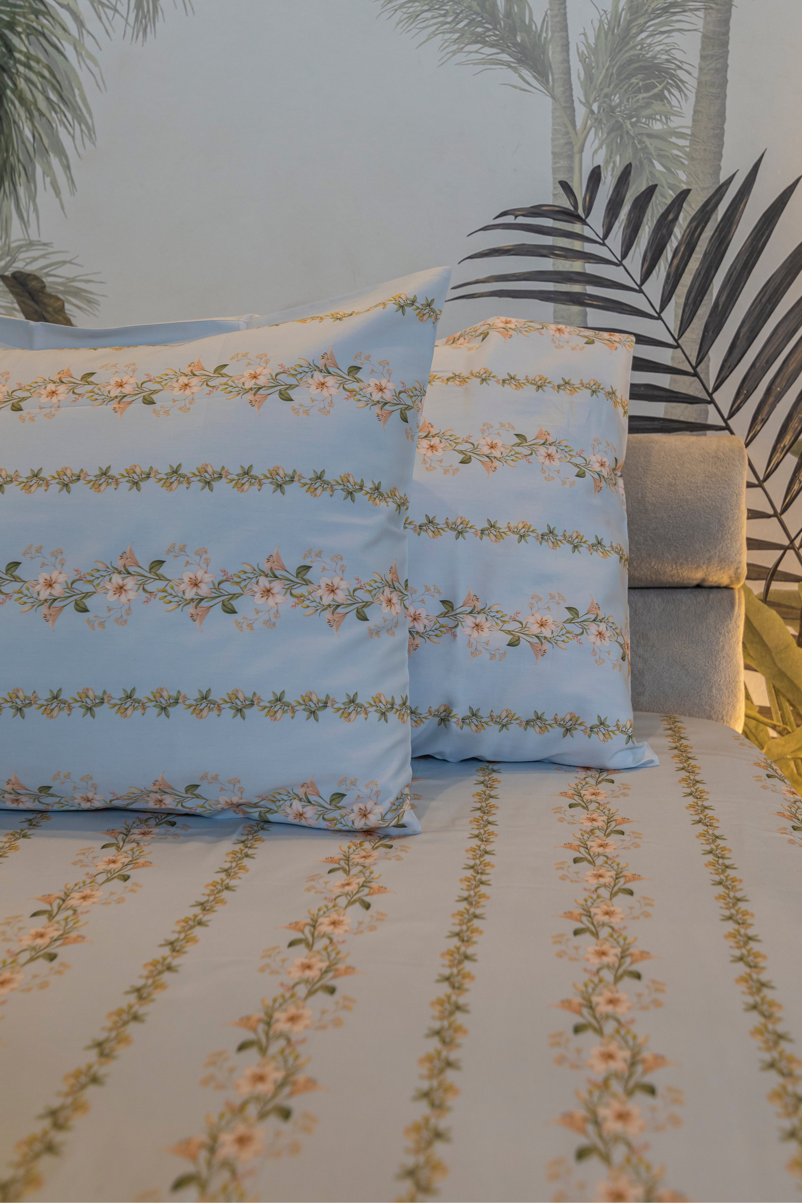 Reysha Digital Print Colour Premium Cotton Bedsheet - Blue Vine Whisper ( Thread Count 300 )