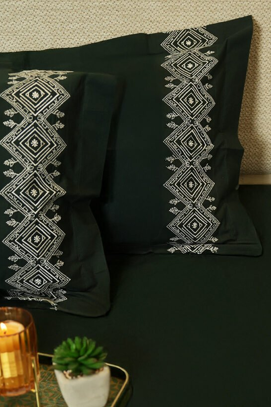 Reysha Solid Colour Premium Cotton Bedsheet - Green Petals ( Thread Count 300 )